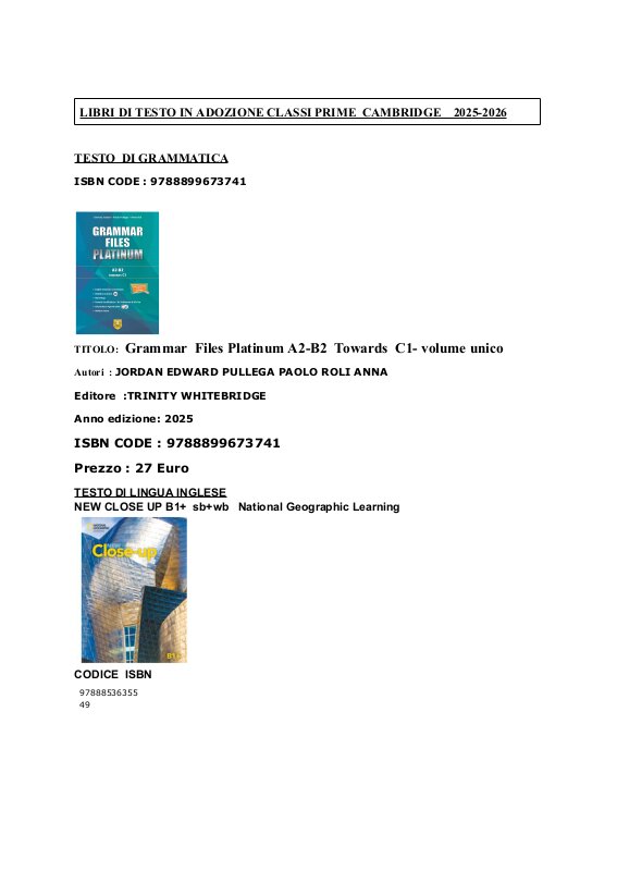 Libri Di Testo Classi Prime Cambridge 2025 2026