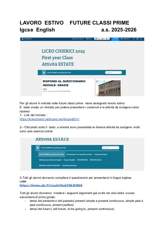Lavoro Estivo Future Classi Prime Igcse English A.S. 2025 2026